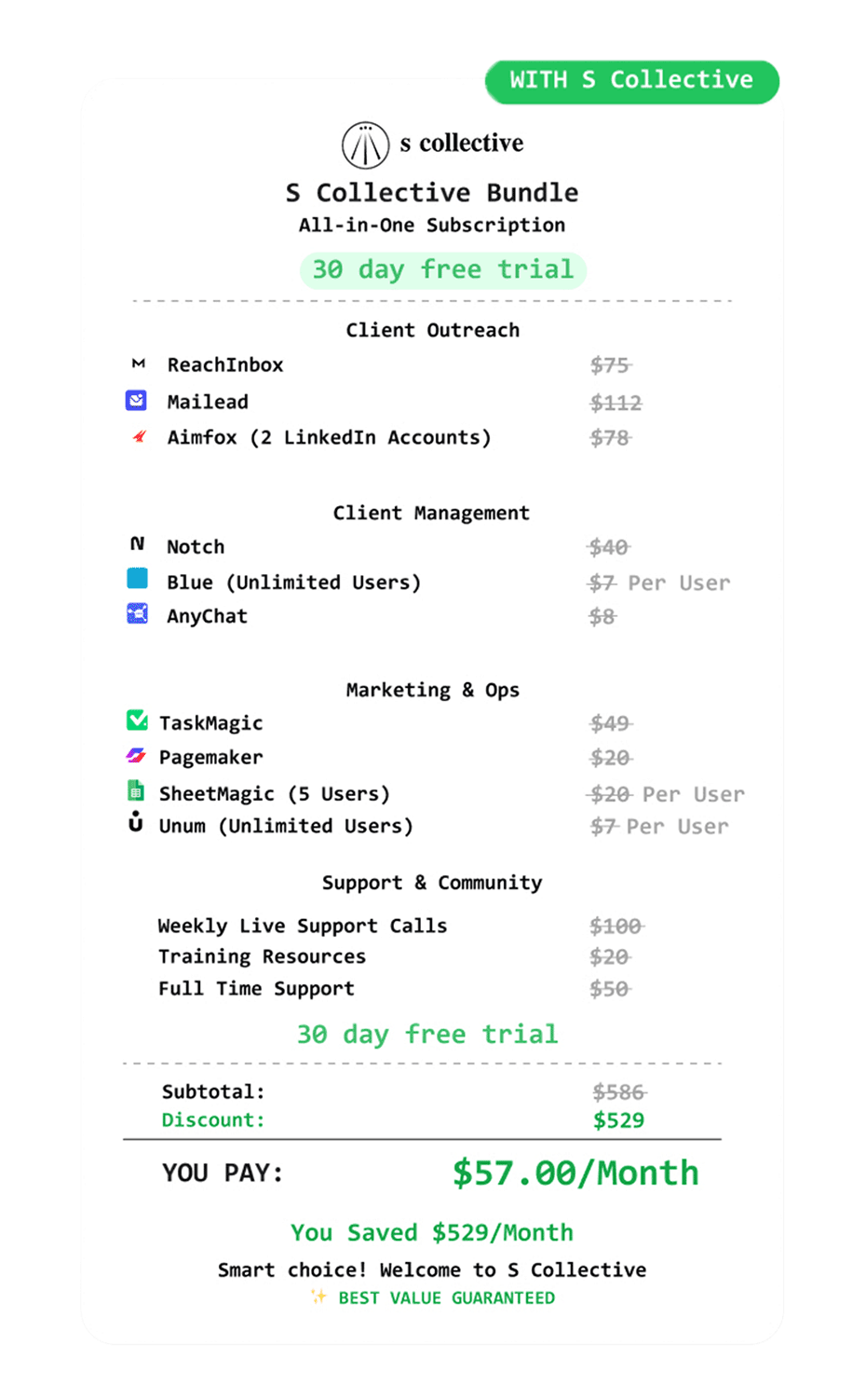 Total Value: $586/month | $5,860/year